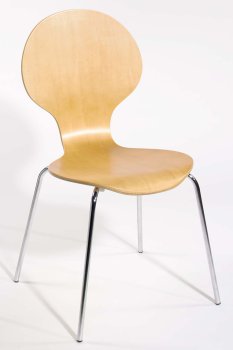 Laminated Wood Stacking Chair BirchChrome Set of 4 Laminated wood shell on chrome legs Plastic spacers on legs prevent seats from being scratched when chairs are stacked Legs are welded Easy assembly Weight 44 Lbs Laminated Wood Stacking Chair BirchChrome Set of 4 Laminated wood shell on