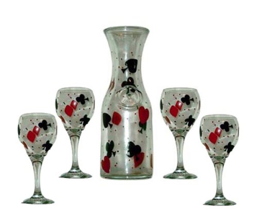 ... ArtisanStreet's 5-Piece Carafe & Wine Glass Set. Hand Painted in Black & Red Playing Cards Design. Made to Order, Signed by ArtisanCheapest Price 2013 ArtisanStreet's 5-Piece Carafe & Wine Glass Set. Hand Painted in Black & Red Playing Cards Design. Made to Order, Signed by Artisan